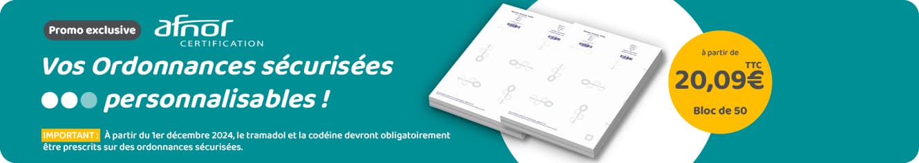 La loi impose à tous les médecins prescrivant des médicaments classés comme stupéfiants, ou classés sur les listes I ou II des substances vénéneuses ou bien les médicaments non soumis à la prescription médicale obligatoire, d’utiliser des ordonnances protégées (ou ordonnances sécurisées). LD Médical, via notre partenaire et imprimeur LUQUET & DURANTON, propose la vente en ligne d’ordonnances sécurisées certifiées AFNOR pour les petites quantité (blocs à partir de 50 feuillets).
