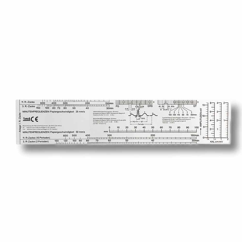 Son format compact et léger en fait un outil idéal pour les médecins et infirmiers en déplacement, que ce soit en milieu hospitalier ou dans des interventions d’urgence. Avec des échelles précises pour les segments PQ, QRS et QT, cette règle offre une vue d’ensemble détaillée pour une lecture rapide et précise des tracés ECG.