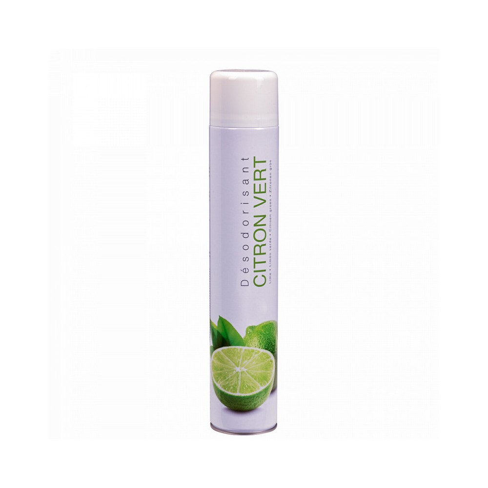 Le désodorisant d'atmosphère Techline parfum citron vert en aérosol de 750 ml, supprime les mauvaises odeurs et parfume agréablement l’atmosphère.