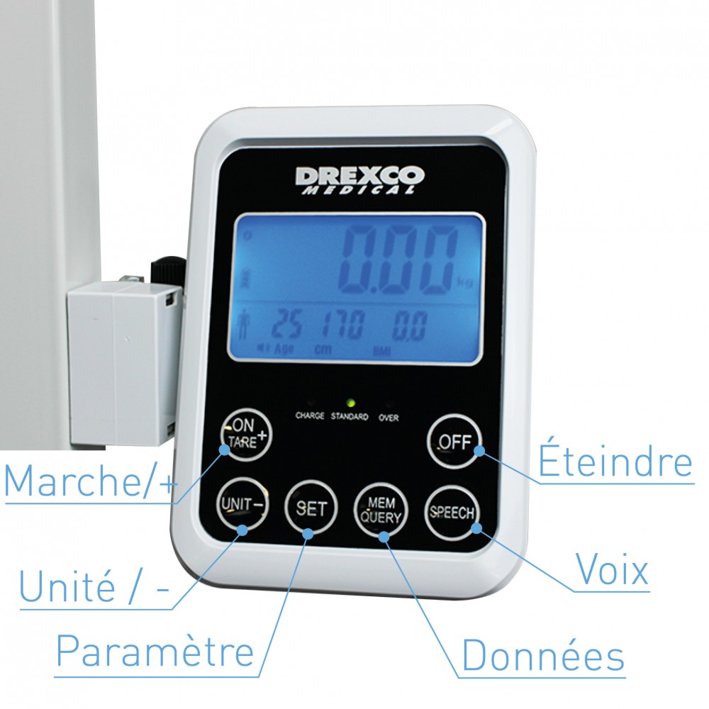 - Fonctions : Calcul automatique IMC, Fonction vocale, Fonction Tare, Fonction mémoire