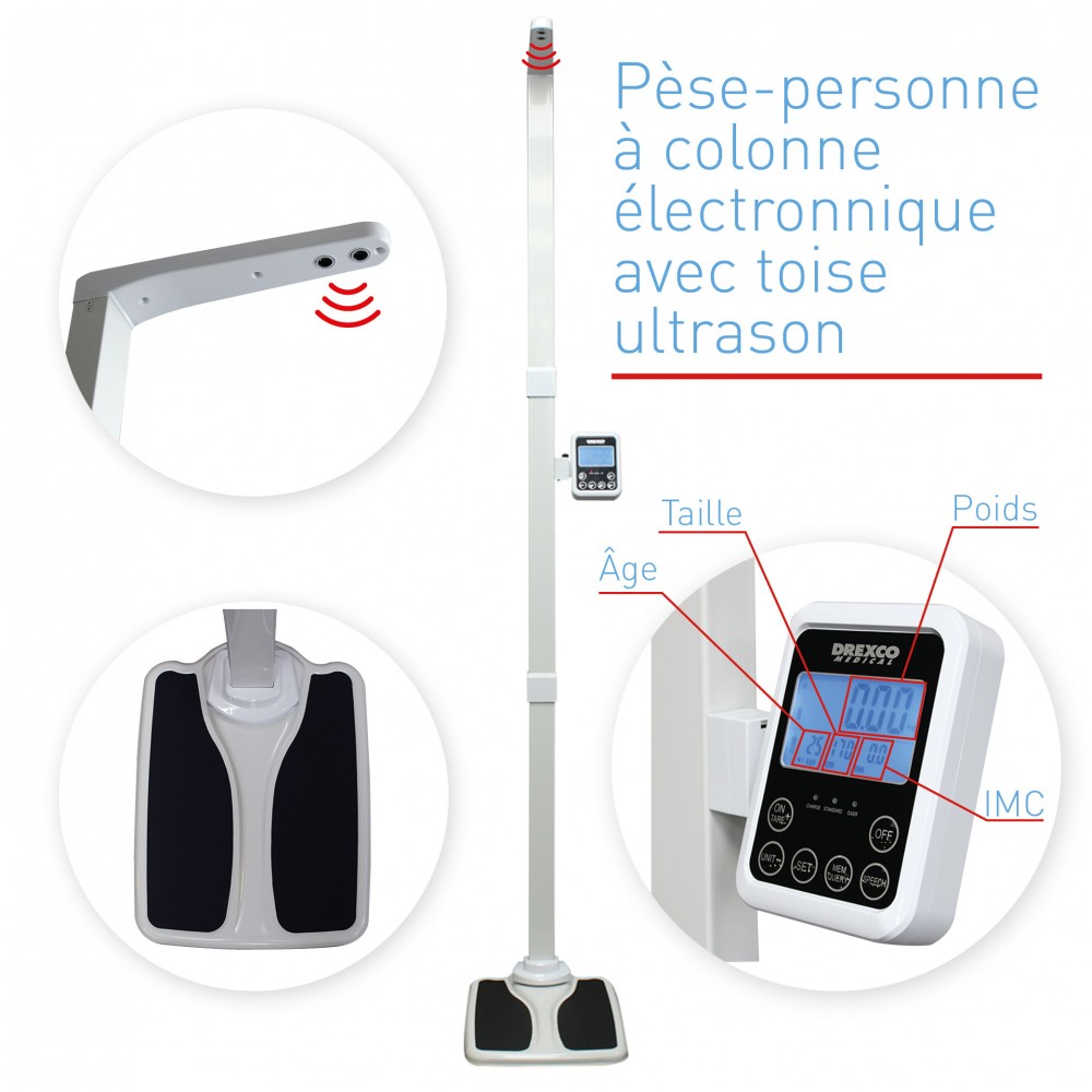 Outil précieux pour les médecins, pédiatres, nutritionnistes et autres professionnels de santé, le Pèse-personne à Toise Ultra-son vous permettra une évaluation holistique de la composition corporelle de vos patients en mesurant leur taille ainsi que leur poids simultanément.