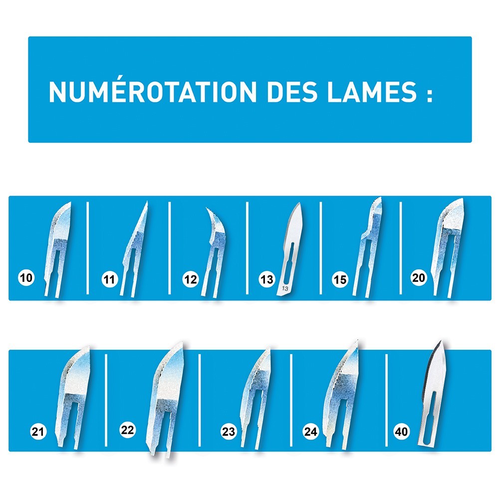 - Compatibles avec tous les manches de bistouris standards, elles s’intègrent facilement à vos instruments existants.
