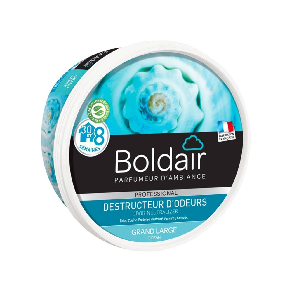 Le gel destructeur d’odeurs Boldair Fraîcheur Marine neutralise efficacement les odeurs persistantes, qu’elles soient d’origine organique ou chimique. Conçu pour répondre aux besoins des hôpitaux, cliniques, bureaux et salles d’attente, il diffuse un parfum doux et rafraîchissant inspiré de la brise marine.