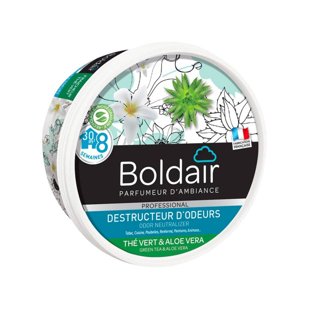 Le gel destructeur d’odeurs Boldair Thé Vert & Aloe Vera est une solution parfaite pour éliminer les odeurs tenaces dans les hôpitaux, cliniques, bureaux, salles d’attente ou tout autre espace professionnel. Sa formule concentrée offre une neutralisation durable des mauvaises odeurs, tout en diffusant un parfum frais et végétal, inspiré des propriétés apaisantes du thé vert et de l’aloe vera.