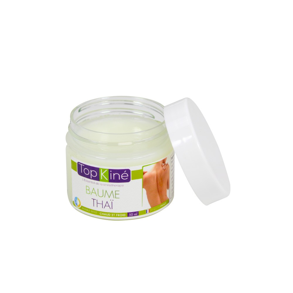 Le Baume Thaï Top’Kiné 50 ml associe la puissance des huiles essentielles à un savoir-faire traditionnel chinois. Il est conçu pour apaiser les douleurs musculaires, soulager les courbatures, et améliorer les problèmes respiratoires comme les rhumes ou sinusites. En massage localisé, il active un effet chauffant grâce au camphre et au clou de girofle, combiné à une sensation de fraîcheur procurée par la menthe et le cajeput. Parfait pour préparer les muscles à l’effort ou apaiser les zones sensibles après une séance sportive, ce baume convient également pour soulager les maux de tête, les douleurs menstruelles et les piqûres d’insectes.