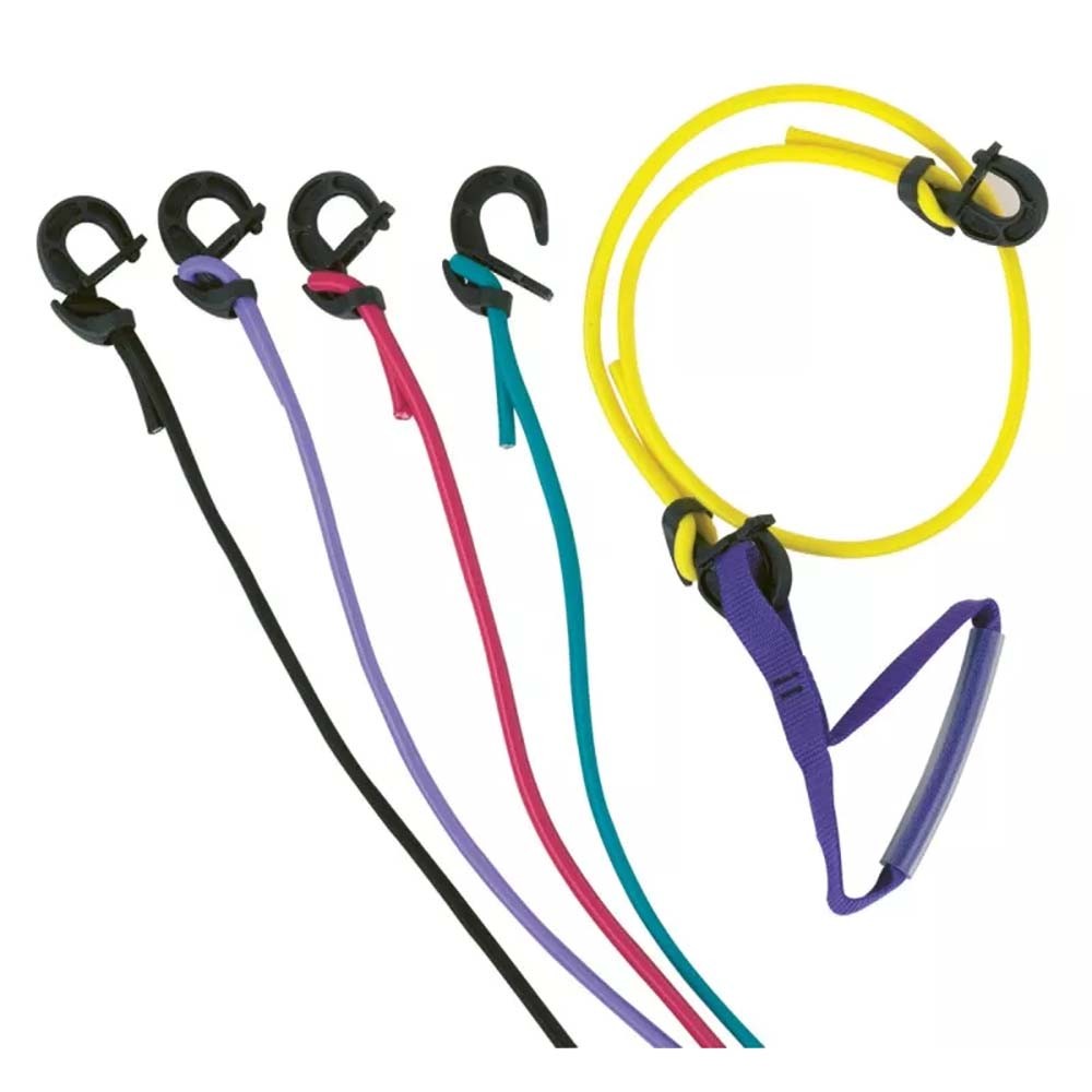 Le jeu de 5 câbles ElasDyn est une solution complète pour un travail musculaire évolutif. Fabriqués en fils d’élastodiène avec double couverture tressée, ces câbles offrent une excellente élasticité et une grande résistance à l’usure. Leurs crochets haute ténacité, équipés d’un linguet de sécurité, assurent une fixation fiable sur une cage ou un espalier, garantissant une utilisation en toute sérénité. Les différentes couleurs permettent un repérage rapide des résistances, facilitant le suivi des exercices et la progression des utilisateurs.