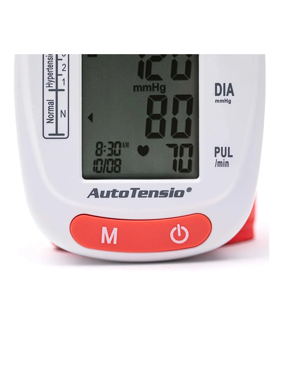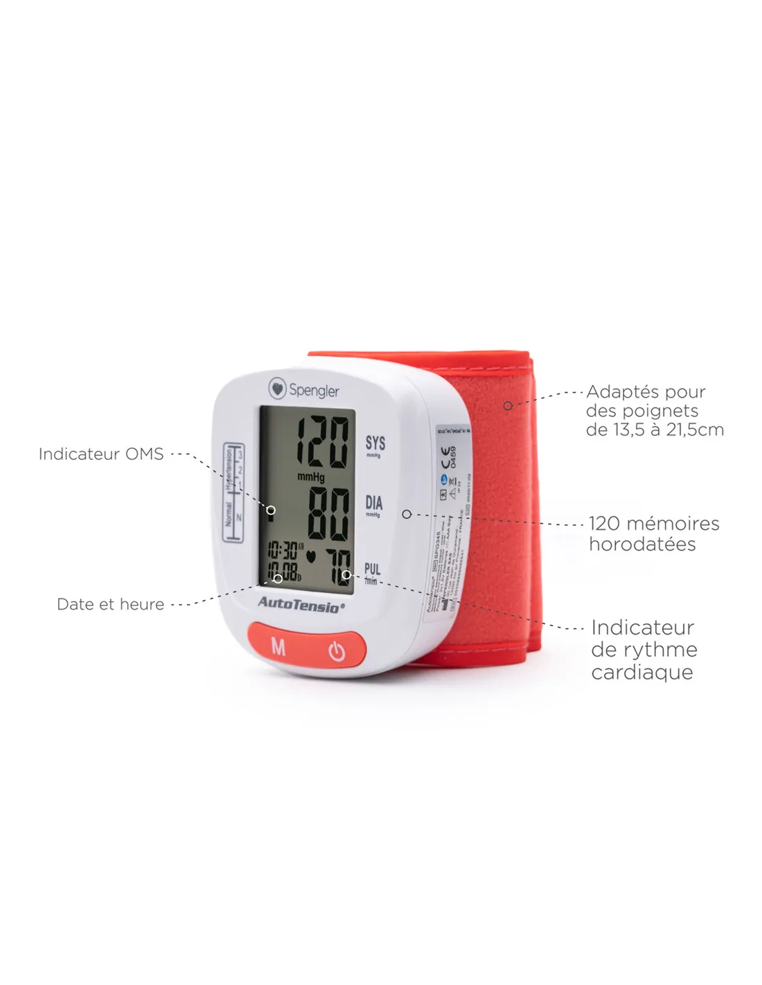 Très simple d'utilisation avec son unique bouton, le tensiomètre électronique poignet Autotensio possède un large écran, et le gonflage et dégonflage sont automatiques.