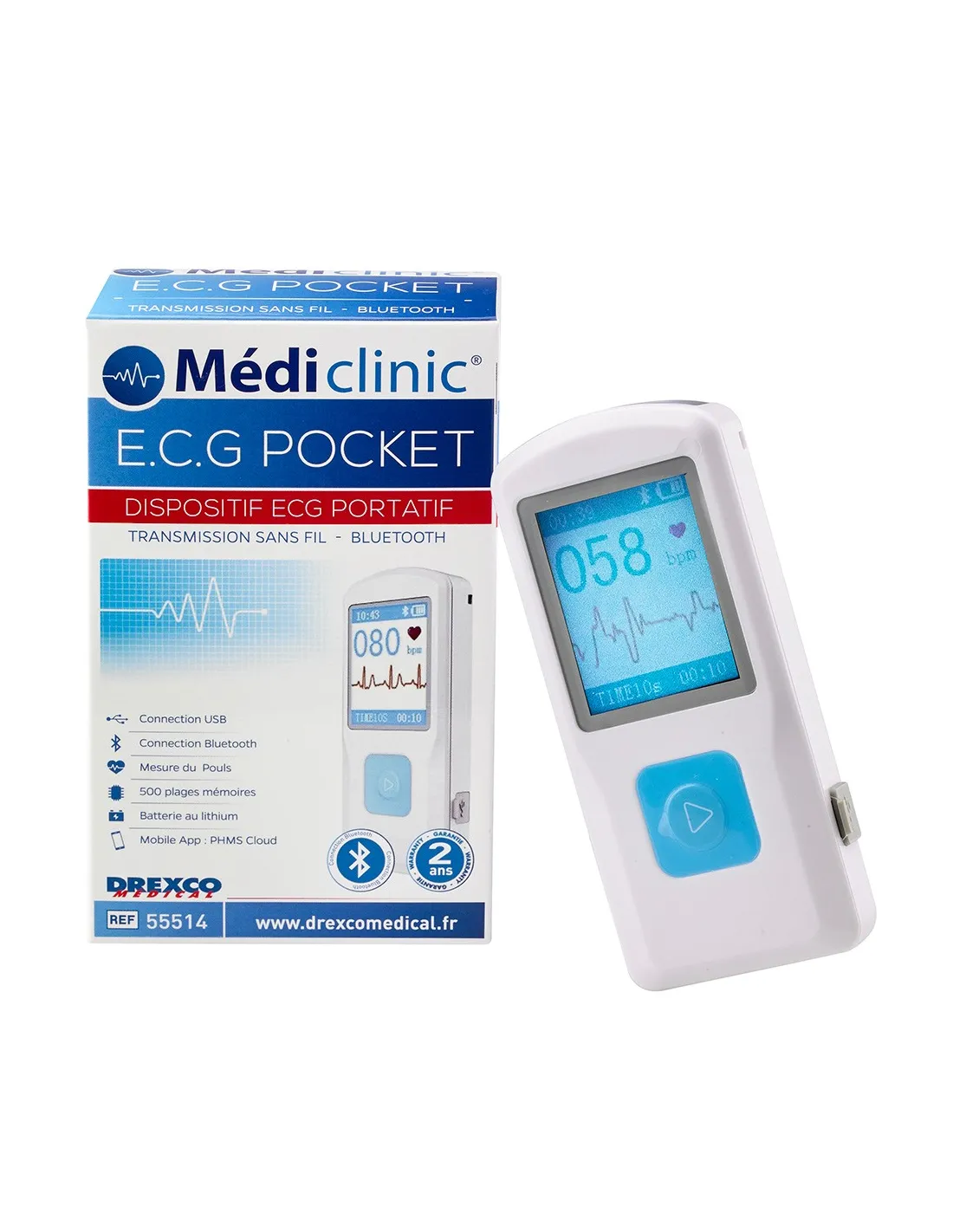 Dispositif ECG portatif avec transmission sans fil - Bluetooth vers smartphones et tablettes.