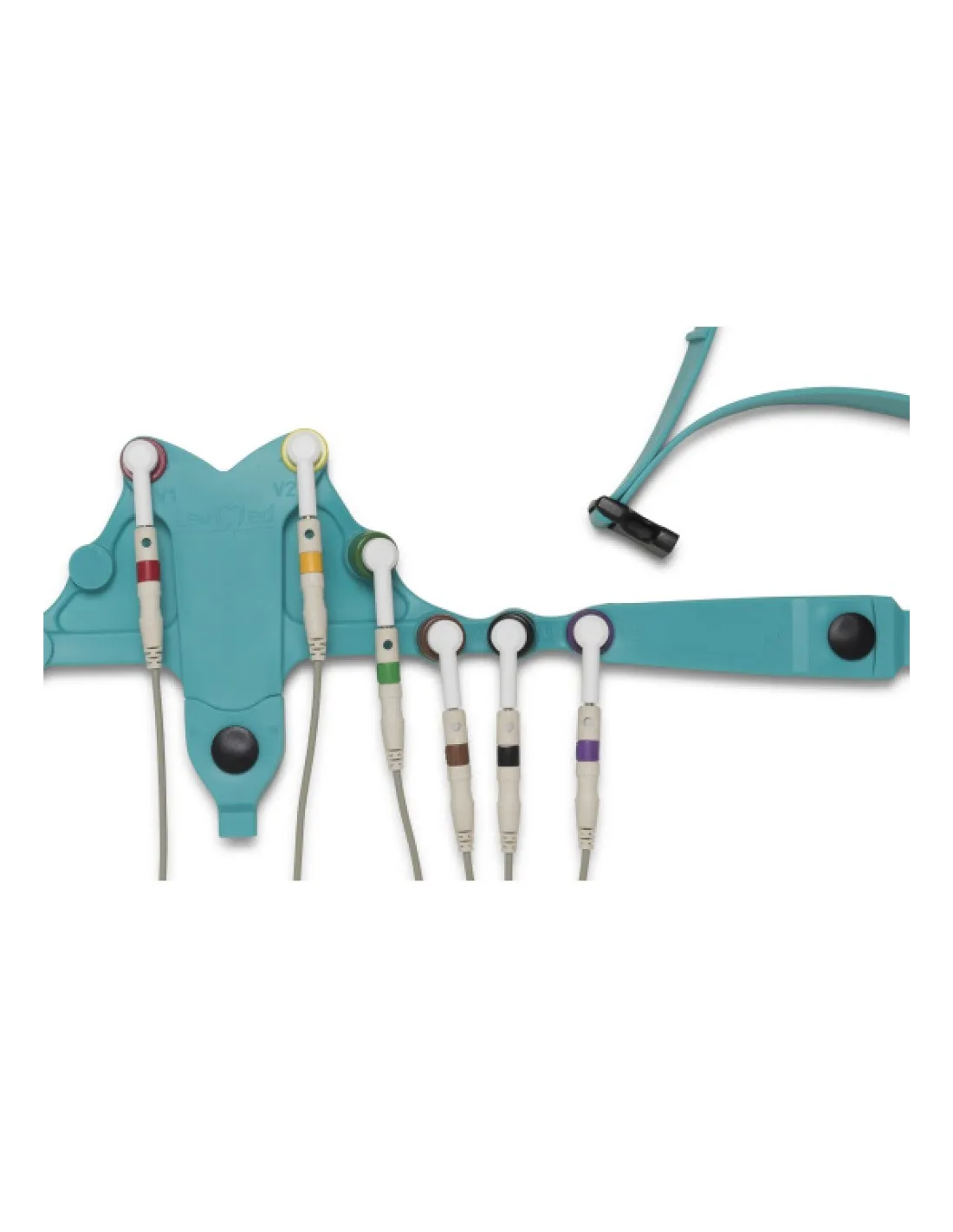 Cette ceinture ECG urgence utilisée dans tous les cas où la coopération du patient notamment au niveau des bras s'avère difficile (situation d'urgence). Compatibilité universelle. Caractéristiques : En silicone incorporant les électrodes. S'installe instantanément sur le patient. Le maintien en place de la ceinture est assuré par le bras du patient qui reposent sur les annexes d'extrémité de la bande. Grande élasticité (50 à 80 cm). Évite l'emmêlement des câbles. 6 précordiales, AVL, AVR et neutre inclus. Electrodes Ag/AgCI argent ajustable à toutes les corpulences(hommes,femmes). Nettoyage aisé. CE.