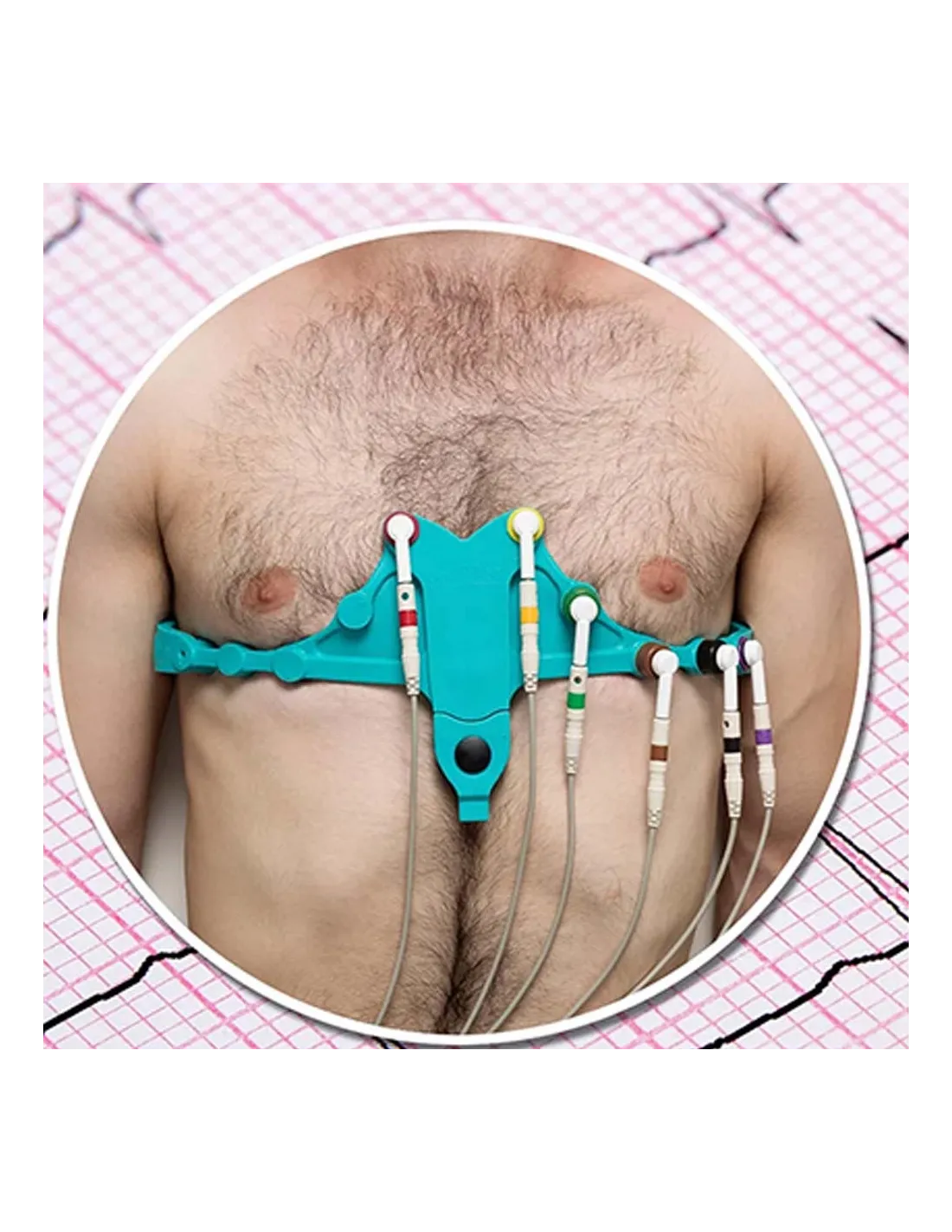 Idéale pour un examen électrocardiographique, cette ceinture bénéficie d'une grande élasticité qui lui permet de s'adapter à toutes les morphologies. Elle peut être positionnée sous la poitrine pour les patientes et sur la poitrine pour les patients.