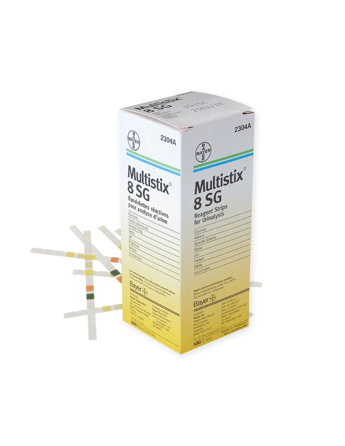 Ces bandelettes réactives, Multistic 8SG de Siemens, sont des bandelettes de test fiables. Siemens Multistix 10SG est utilisé pour la détection d'infections des voies urinaires (UTI1), du diabète et de troubles rénaux.
