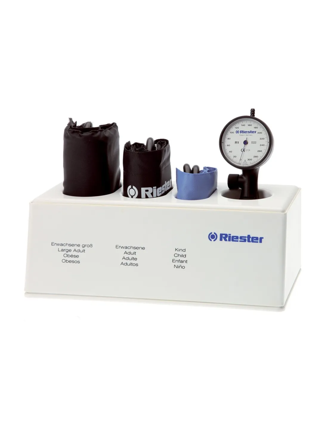 Set de rangement tensiomètre R1 Riester composé d'un tensiomètre écran blanc et de 3 brassards.