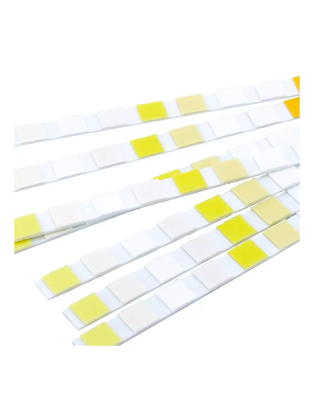 Bandelettes urinaires réactives avec grille de lecture à l'échelle.