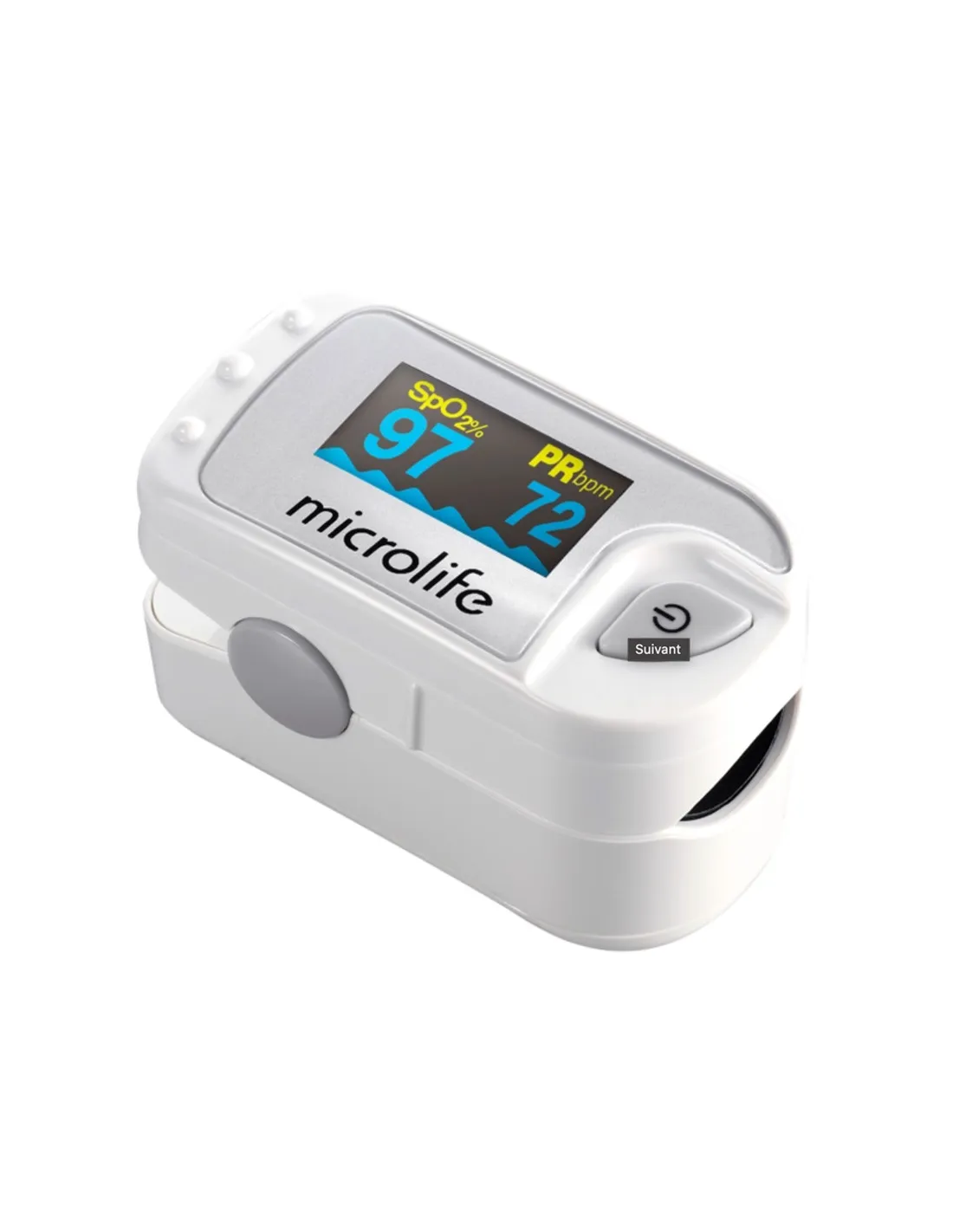 - Détermine la saturation en oxygène (SpO2) et la fréquence cardiaque (pouls)