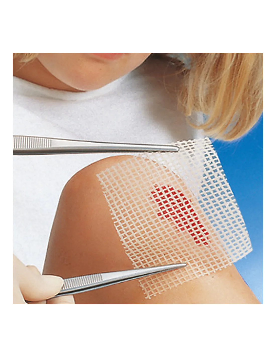 Compresses grasses inertes en tulle de coton à larges mailles.