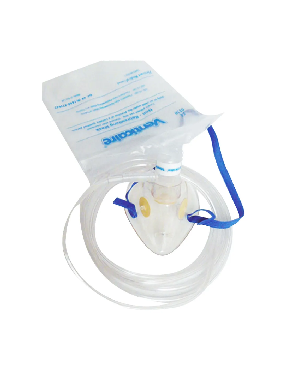 Masque à oxygène haute concentration avec poche de recueil de l'O2 permettant la haute concentration.