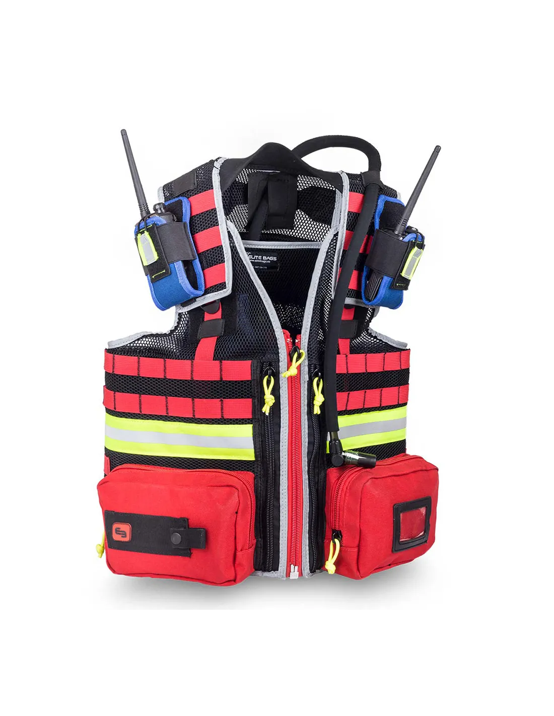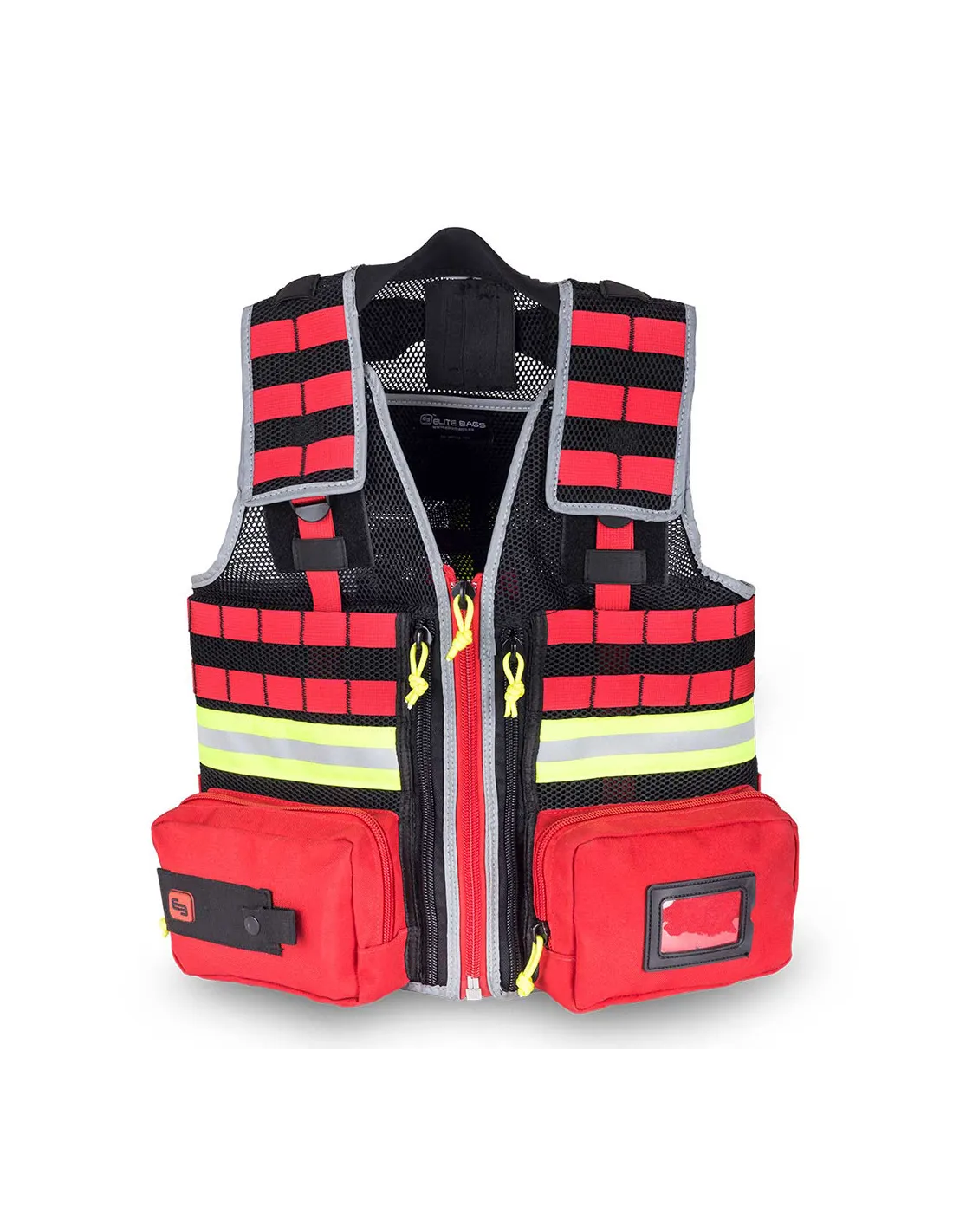 Le gilet d'intervention secours et urgences Elite Bags rouge a été spécialement conçu pour les situations d'urgence telles que les incendies, les opérations de sauvetage, et l'identification de véhicules sur la route.