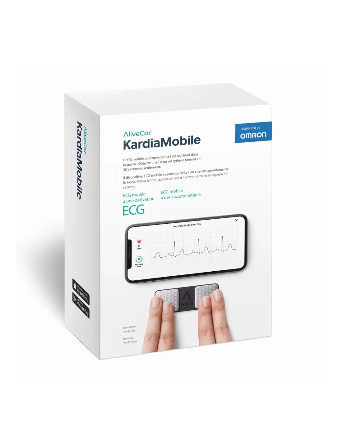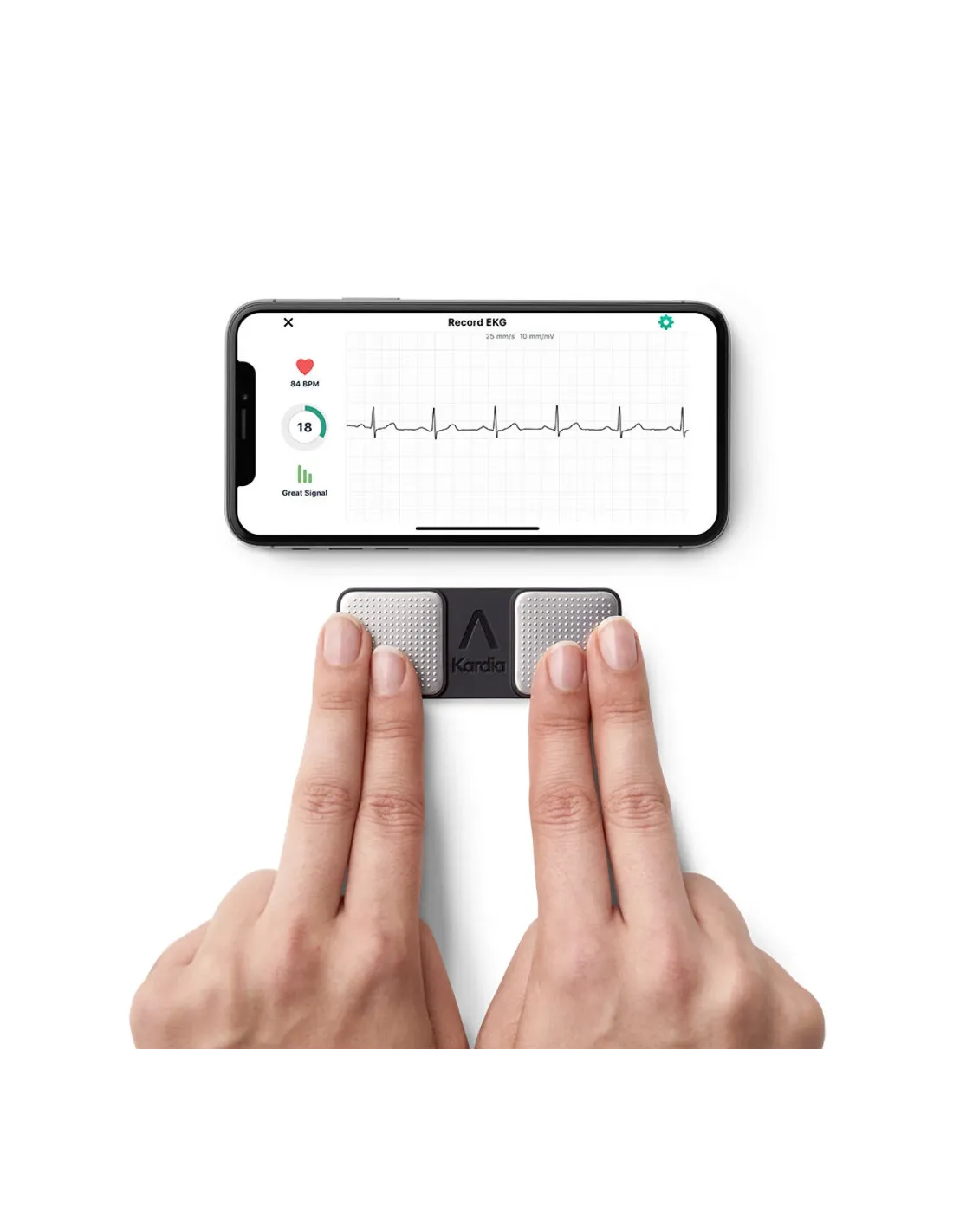 - Connecté à l'application Kardia pour l'enregistrement, la visualisation, la mémorisation des résultats et le partage des ECG avec le médecin