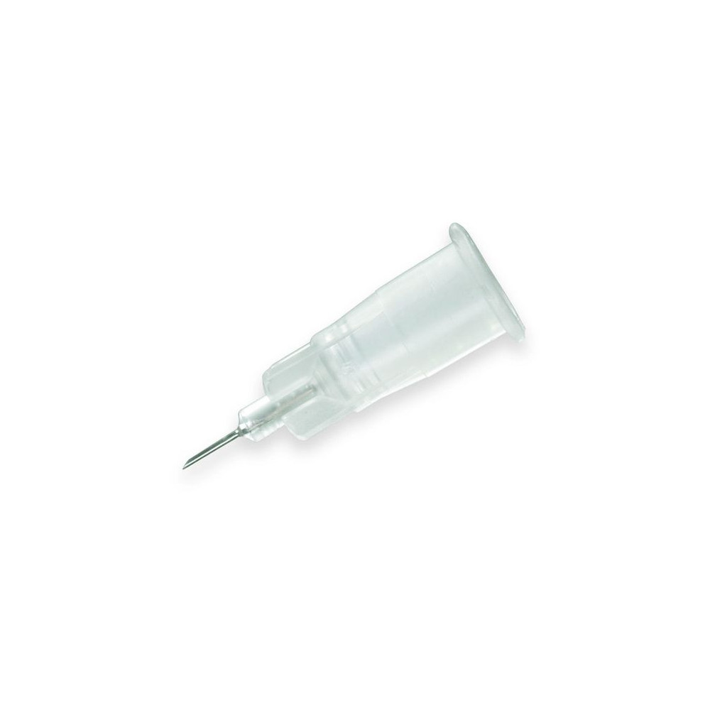 L'aiguille hypodermique est en acier inoxydable, avec une base translucide pour une meilleure visibilité et elle s'adapte sur un cône Luer.