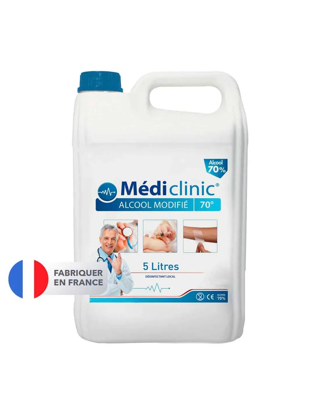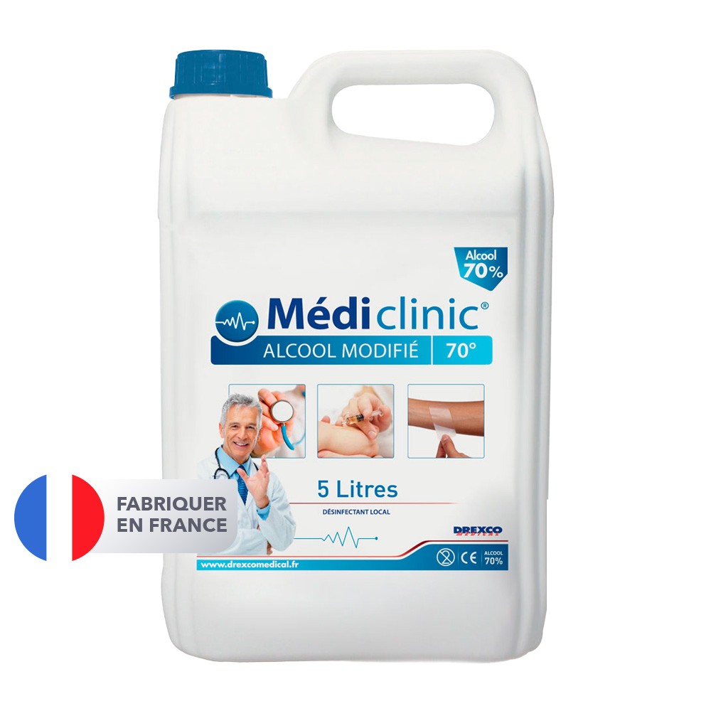 L'Alcool Modifié à 70° de MEDI'CLINIC est un produit essentiel pour maintenir une hygiène optimale. Ce désinfectant bactéricide est conforme aux normes CE et EN1276, assurant une asepsie immédiate et efficace. Son conditionnement en bidon de 5L offre un excellent rapport qualité/prix. Ce produit peut être utilisé pour recharger des distributeurs, vaporisateurs, flacons, etc. Son utilisation est recommandée pour l'antisepsie de la peau saine, en respectant les indications d'utilisation et en le tenant hors de portée des enfants.