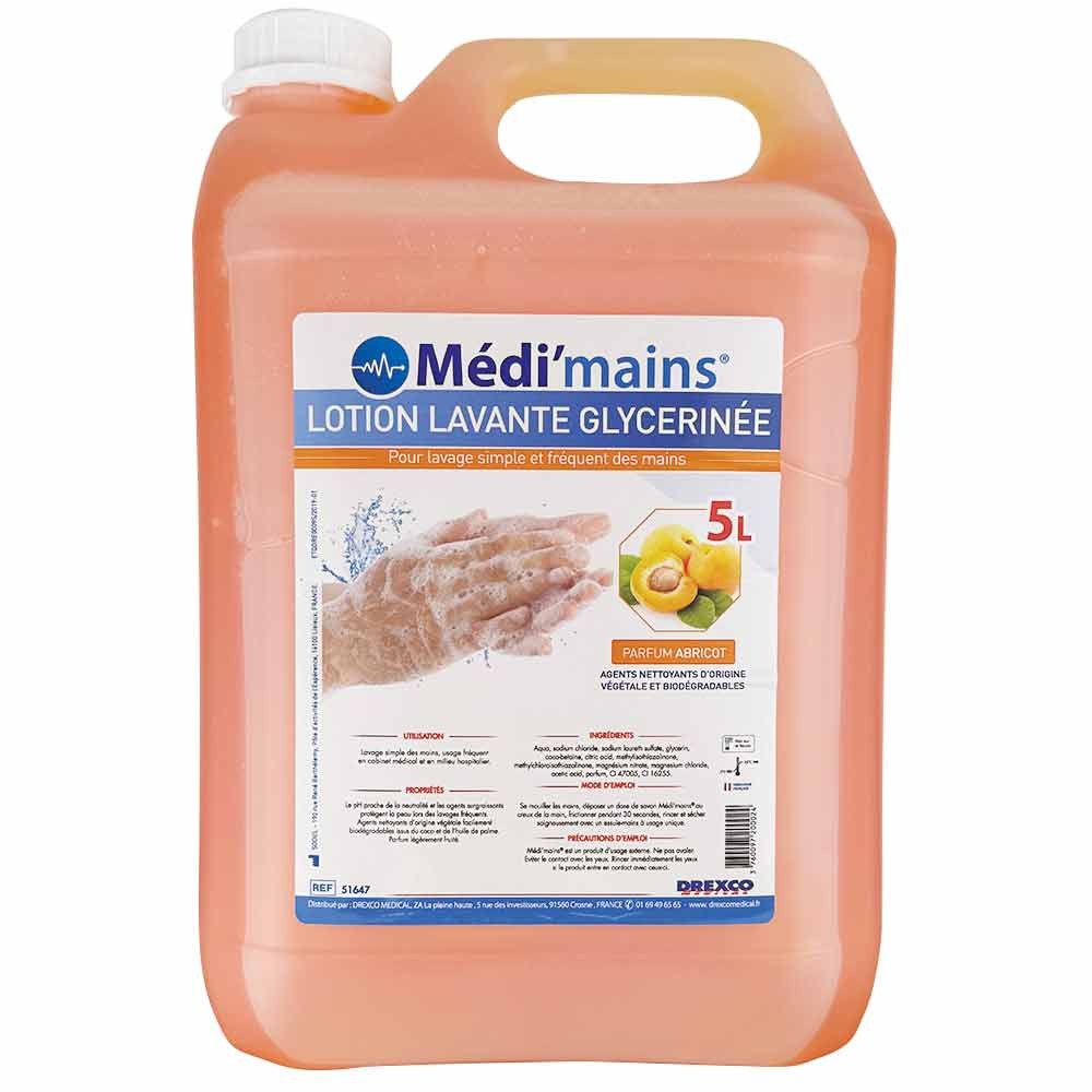 La Lotion lavante Médi'mains abricot est formulée à base d'agents nettoyants d'origine végétale, offrant un nettoyage efficace tout en respectant la peau. Son parfum délicat apporte une touche de fraîcheur et de douceur à chaque lavage. Avec sa formule glycérinée, elle est particulièrement adaptée aux peaux sensibles et aux usages répétés. Ce produit économique est conditionné dans un bidon de 5 litres pour une utilisation à long terme.