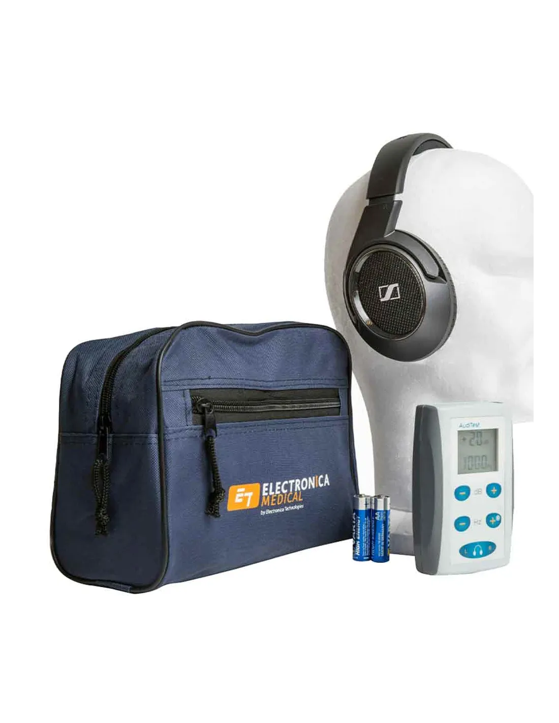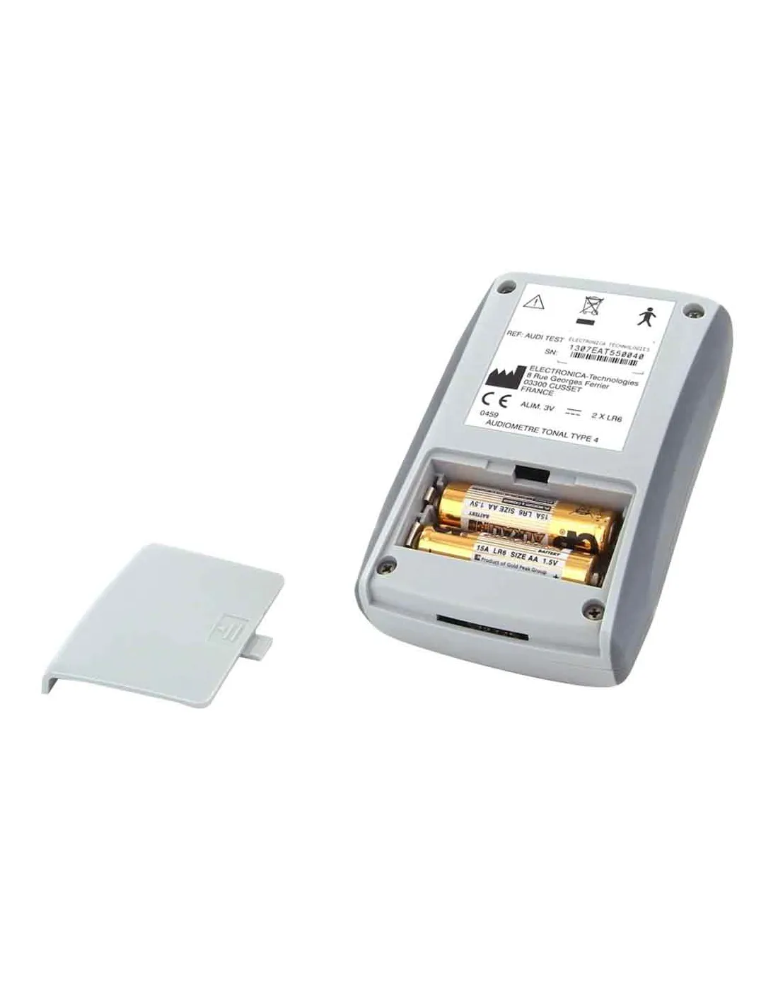 - Livré dans une trousse incluant : boitier audiométrique, un casque, 2 piles, notice d’utilisation et d’entretien