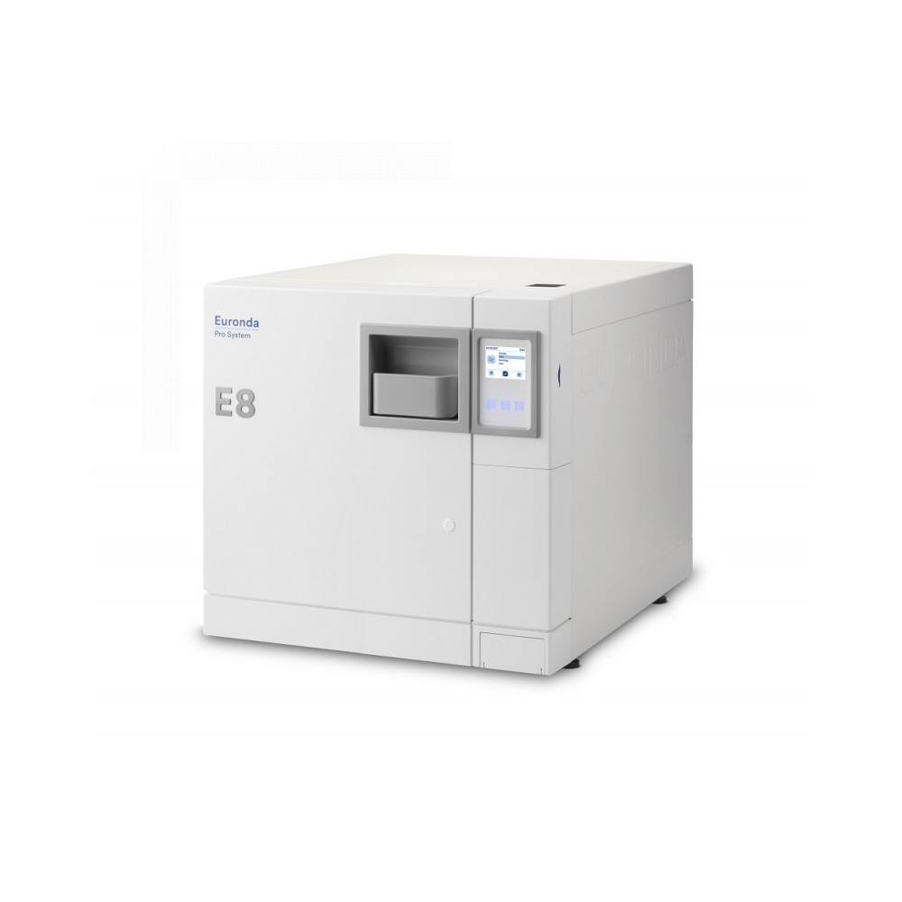 L’Autoclave E8 Euronda 24 Litres allie performance, innovation et sécurité. Ses dimensions compactes (460 x 455 x 610 mm) et son poids de 48 kg (machine vide avec panier et plateaux) permettent une installation facile dans n’importe quel environnement médical. De plus, sa consommation d’eau réduite à 300 ml par cycle et sa puissance absorbée de 2300 W en font un appareil économe en énergie.