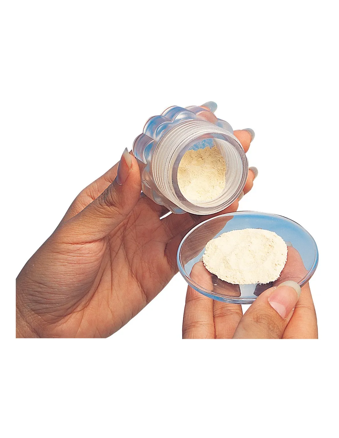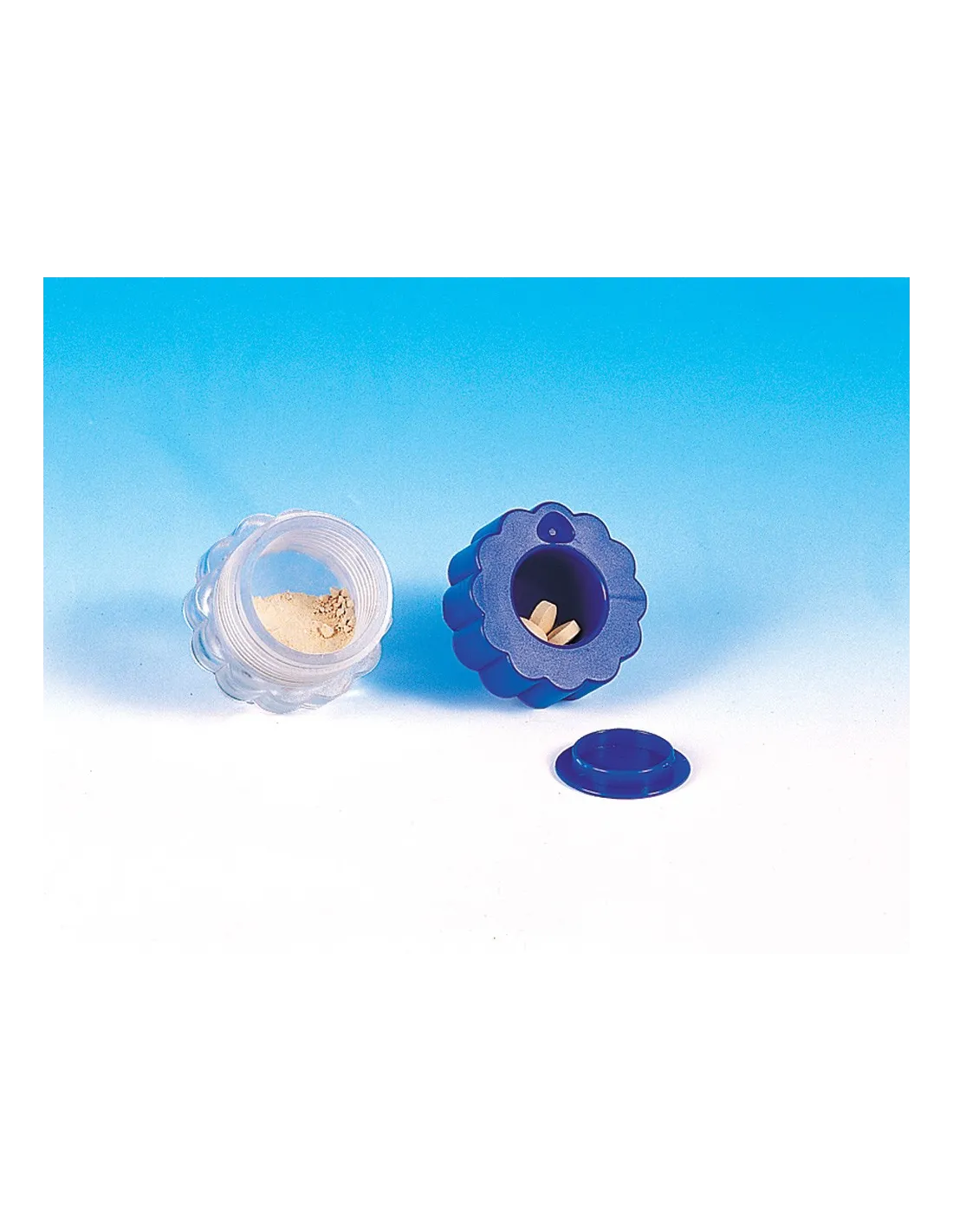 Tourner simplement le gros écrou pour transformer en poudre les comprimés pouvant être également stockés dans un petit réceptacle.