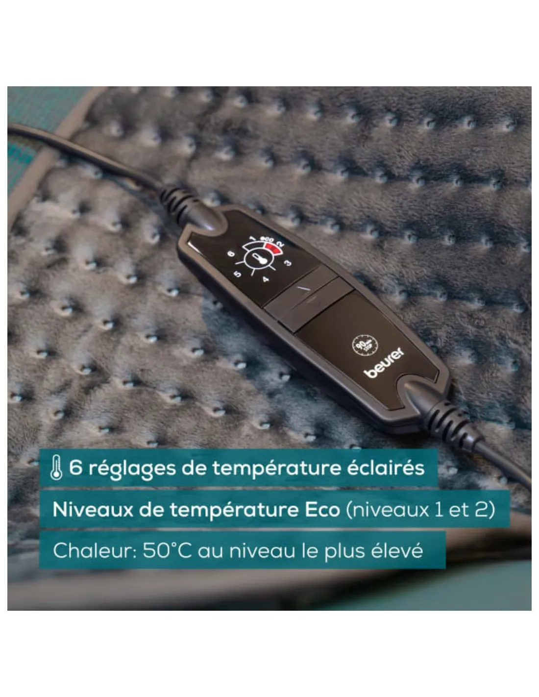 Grâce à ses 6 réglages de température éclairés, ainsi que son format XXL, le HK 123 de Beurer vous offre confort et chaleur enveloppante, vous permettant de profiter pleinement de moments de détente et de bien-être.
