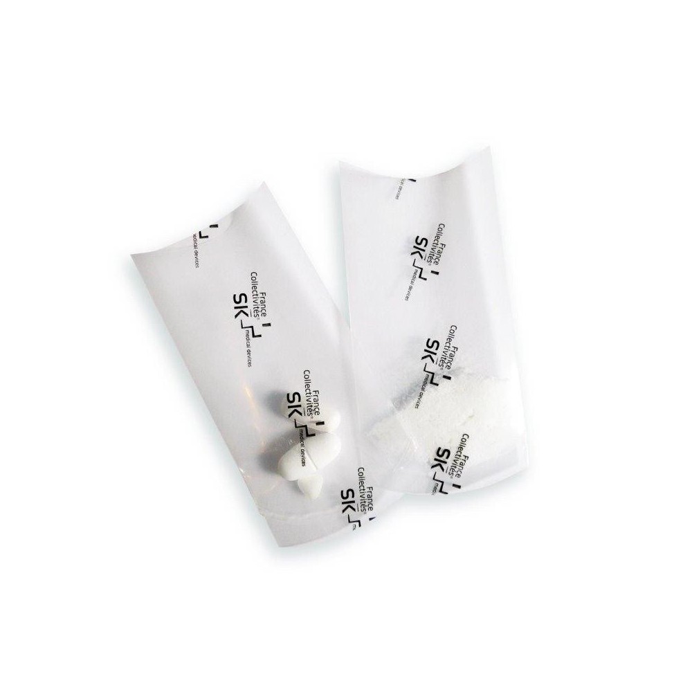Ces pochettes sont en plastique très solide et ne sont pas abîmées lors du broyage. Elles sont constituées avec une base et une ouverture courbées pour garantir la récupération intégrale des médicaments. Leur matière rigide permet de mieux verser le contenu du sachet sans perte de médicament.