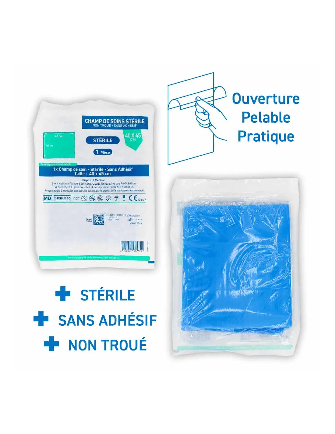 Les champs de soins simples stériles sans adhésif, à usage unique, sont conçus pour la petite chirurgie et les soins techniques nécessitant une protection fiable. Dotés d’une face absorbante et d’une face imperméable, ils assurent une barrière efficace contre les fluides et contribuent au maintien d’un environnement stérile, sans fenêtre d’intervention.
