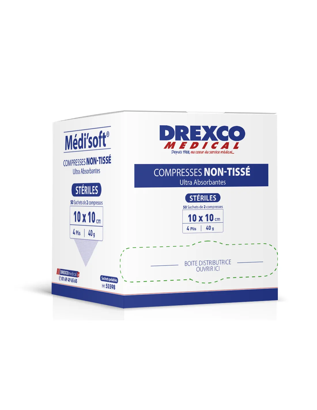 - 10 x 10 cm (50 sachets individuels de 5 compresses, soit 250 compresses)