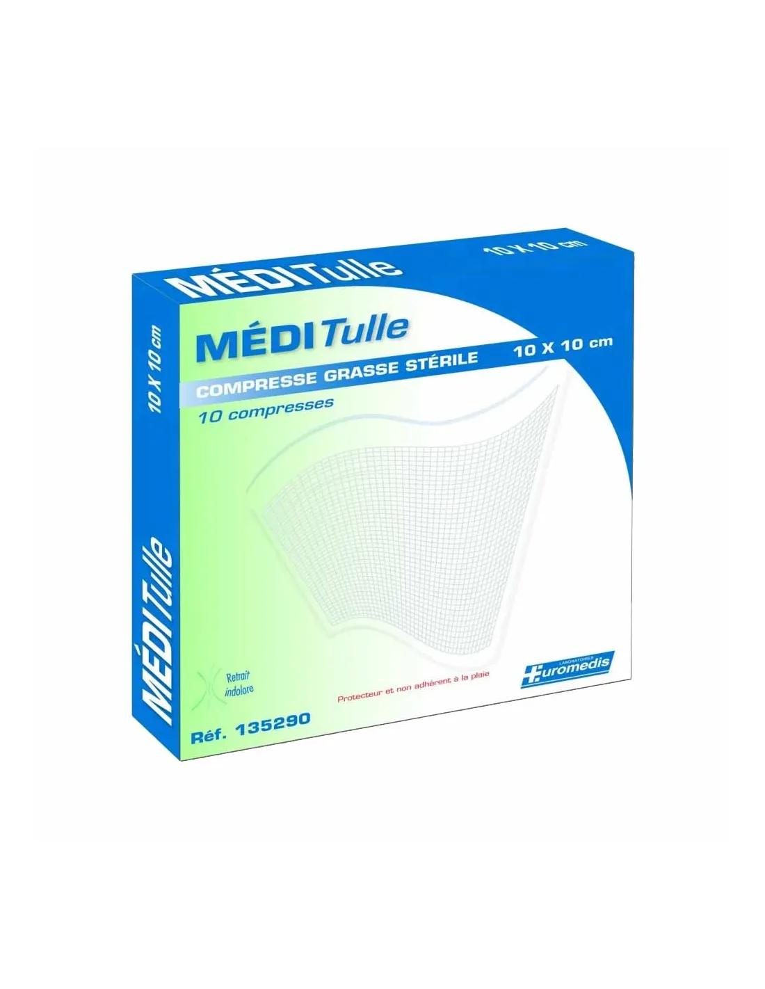 Les compresses stériles parafinées Médi Tulle sont un pansement gras sous sachet individuel stérile particulièrement recommandé contre les brûlures mais également pour le traitement des plaies ouvertes. Son support aéré à larges mailles permet le drainage des exsudats et favorise le rétablissement rapide de l'aspect de la peau.