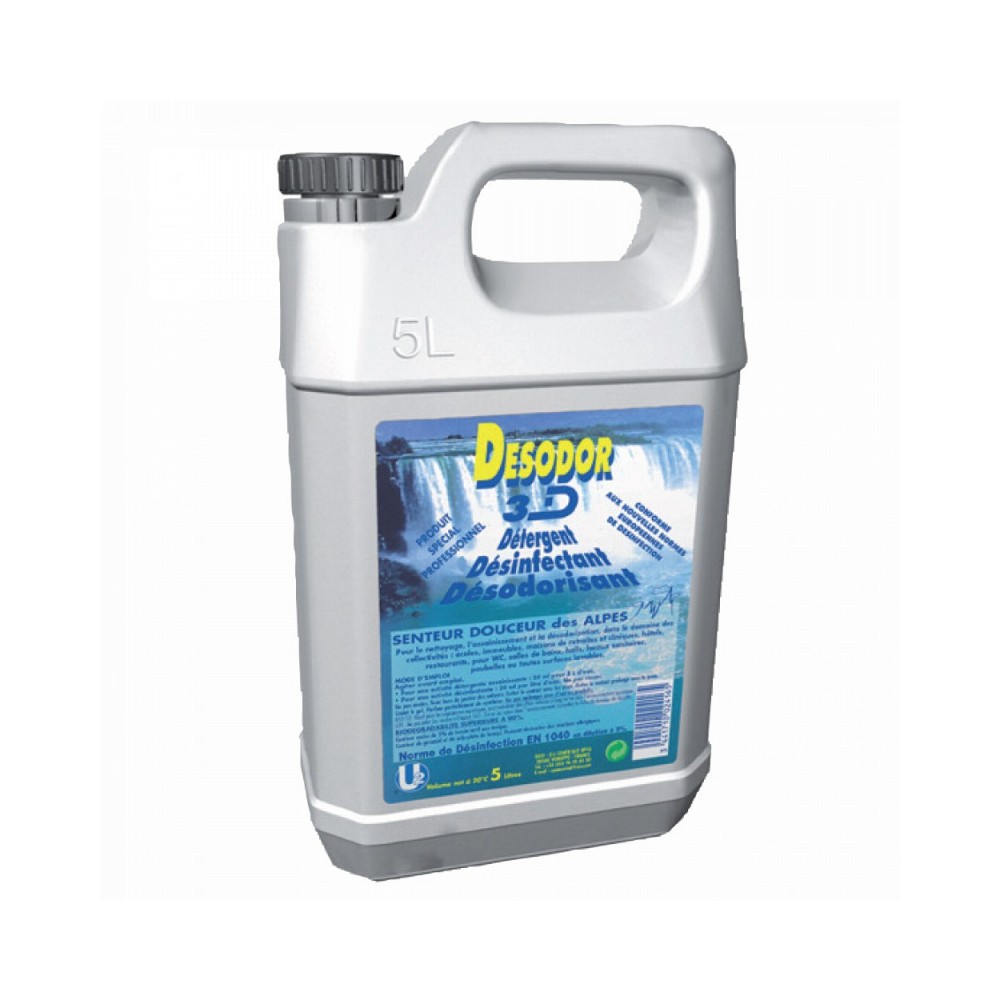 Le Détergent 3D odorisant est spécialement formulé pour offrir une solution complète de nettoyage, désinfection et désodorisant, aussi bien en milieu professionnel que domestique. Sa formule concentrée permet d’obtenir jusqu’à 160 nettoyages en diluant seulement 50 ml de produit dans 2 litres d’eau, garantissant une utilisation économique et performante. Ce détergent sans rinçage facilite l’entretien régulier des surfaces tout en diffusant un parfum délicat évoquant la douceur des Alpes. Sa polyvalence et son efficacité en font un incontournable pour les professionnels exigeants.
