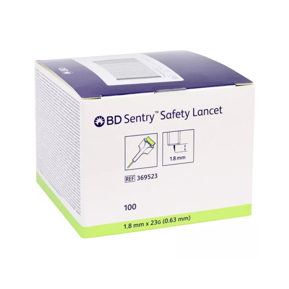 Les Lancettes BD Sentry 23G sont spécialement conçues pour le prélèvement de sang capillaire au bout du doigt, adaptées aux peaux plus épaisses grâce à un diamètre d’aiguille de 0,63 mm et une profondeur de piqûre de 1,8 mm. Leur activation par bouton poussoir permet une utilisation simple et rapide, tandis que la mise en sécurité automatique et irréversible de l’aiguille après ponction assure une protection maximale contre les risques de piqûres accidentelles.