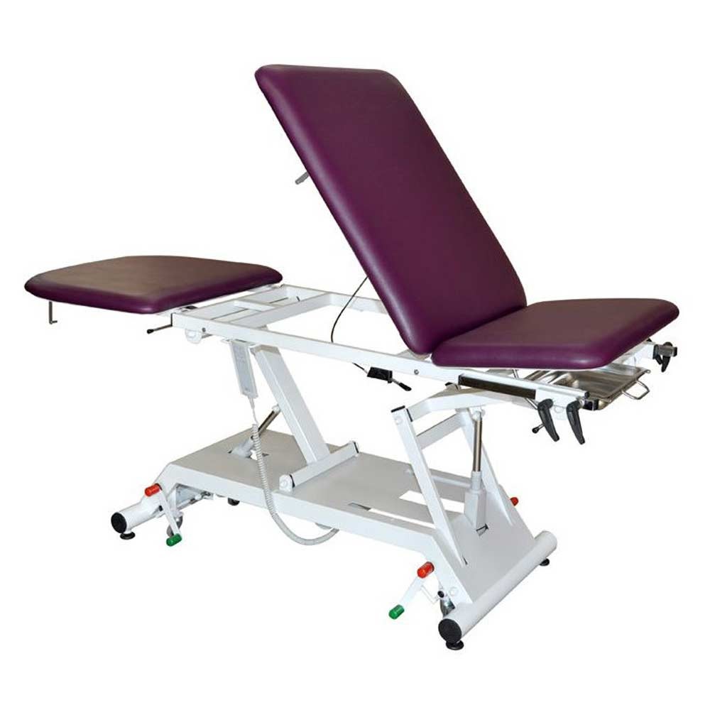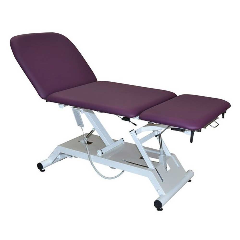Le divan électrique 3 plans peut supporter un poids allant jusqu'à 300kg. Le dossier et la partie centrale sont réglables par vérin à gaz. Il dispose d'un système proclive/déclive sur l'ensemble du divan (+15°/-15°).
