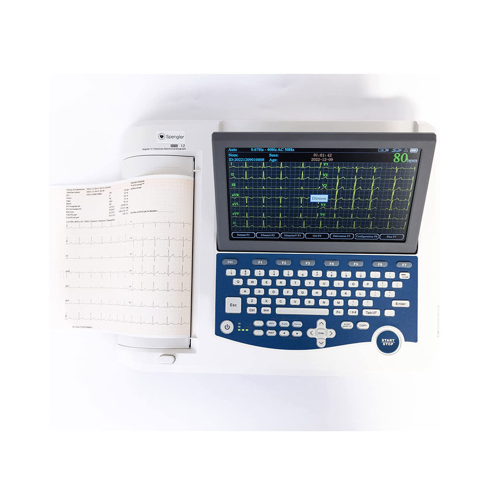 12 pistes d'enregistrement : l'ECG Spengler CardioMate est équipé de 12 canaux d'enregistrement, ce qui permet de capturer des informations détaillées sur l'activité électrique du cœur. Cette fonctionnalité offre une vision plus complète de l'état du patient, facilitant ainsi le diagnostic précis.