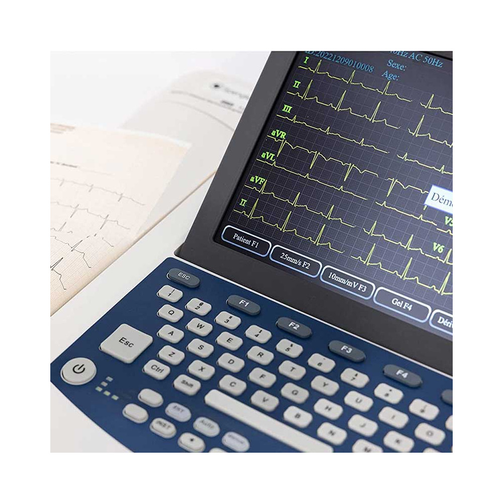 - Fonctions : Visualisation temps réel 12 dérivations ; Enregistrement 10s, 60s ou continue ; Zoom, règle et comparaison d’études