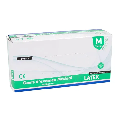 - Gants d'examen en latex poudrés, non stériles Boîte de 100
