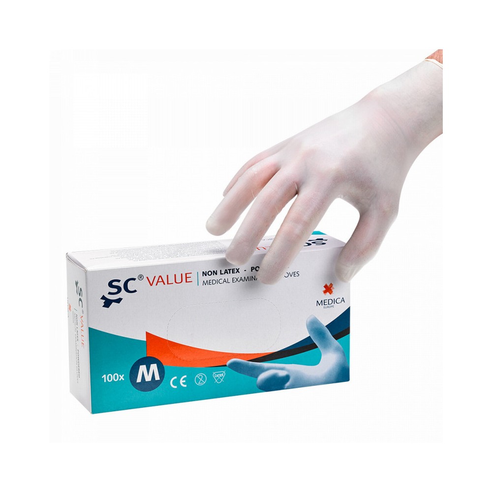 Gants Sensicare Value poudrés en PVC hypoallergénique.