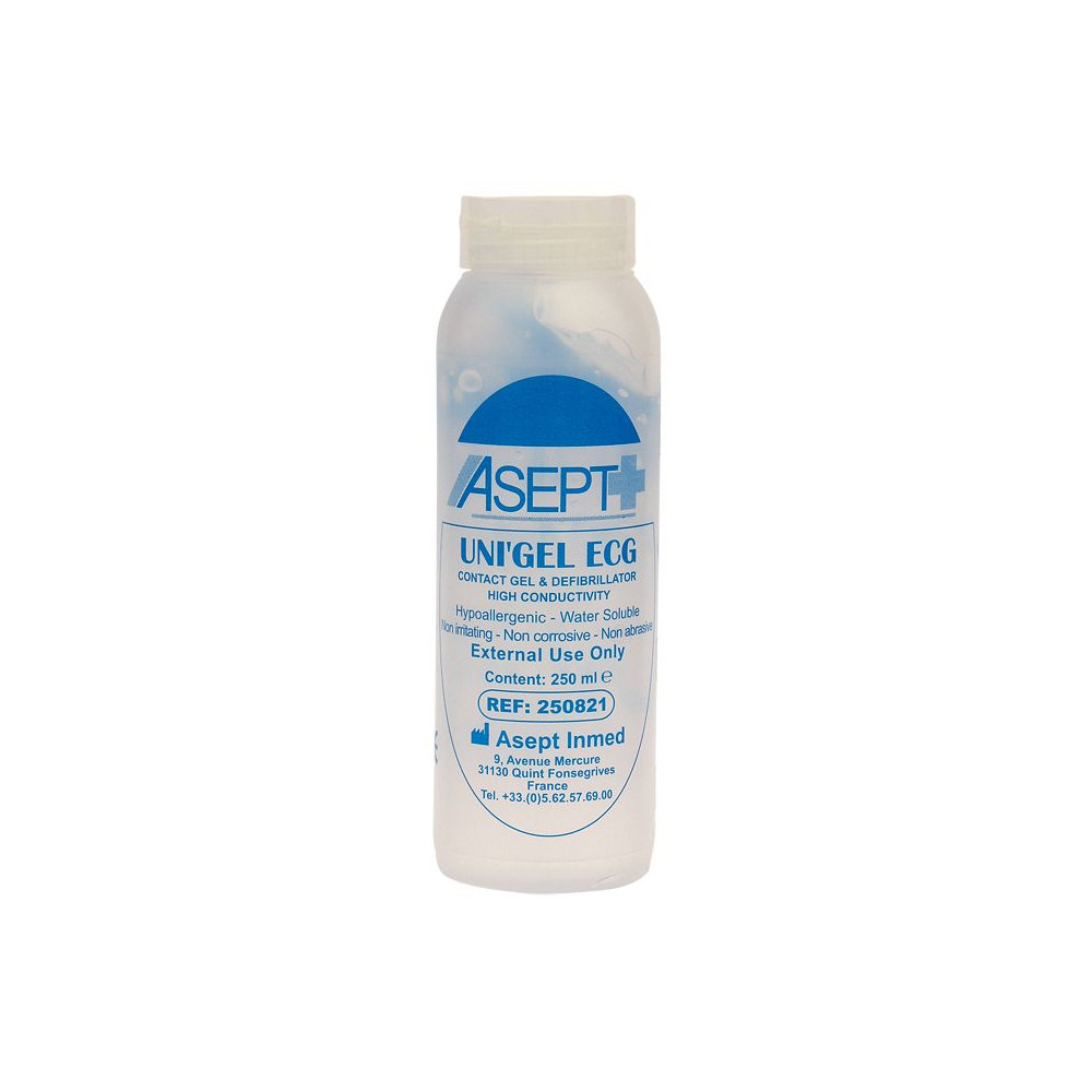 Le gel conducteur Uni'Gel Asept Inmed 250 ml est un gel transparent et non stérile conçu pour être utilisé aussi bien avec un ECG qu'un défibrillateur. Il améliore la transmission du courant lors des examens médicaux.