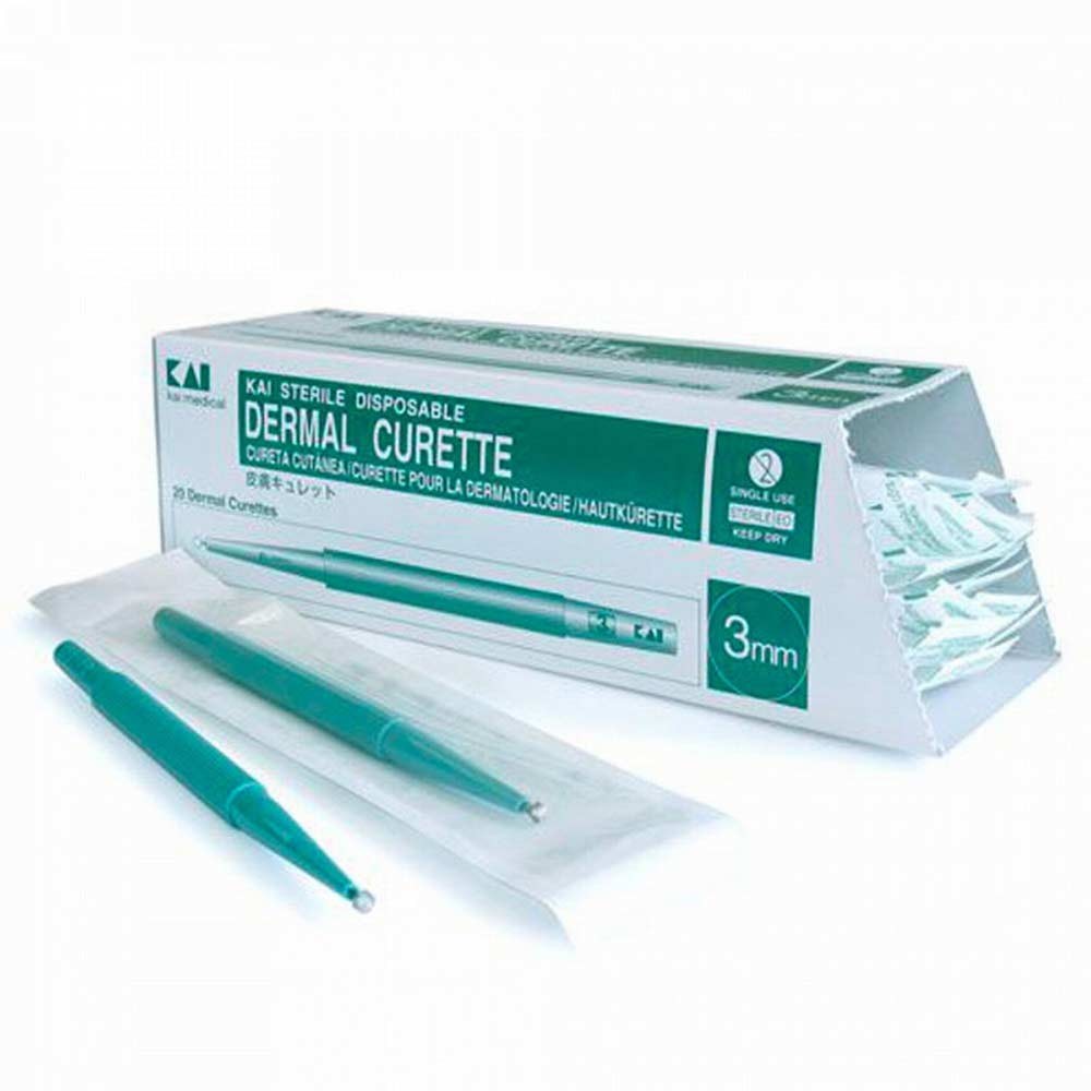 Curette dermatologique stérile à usage unique, demi-bordure tranchante en acier inoxydable, sans soudure.