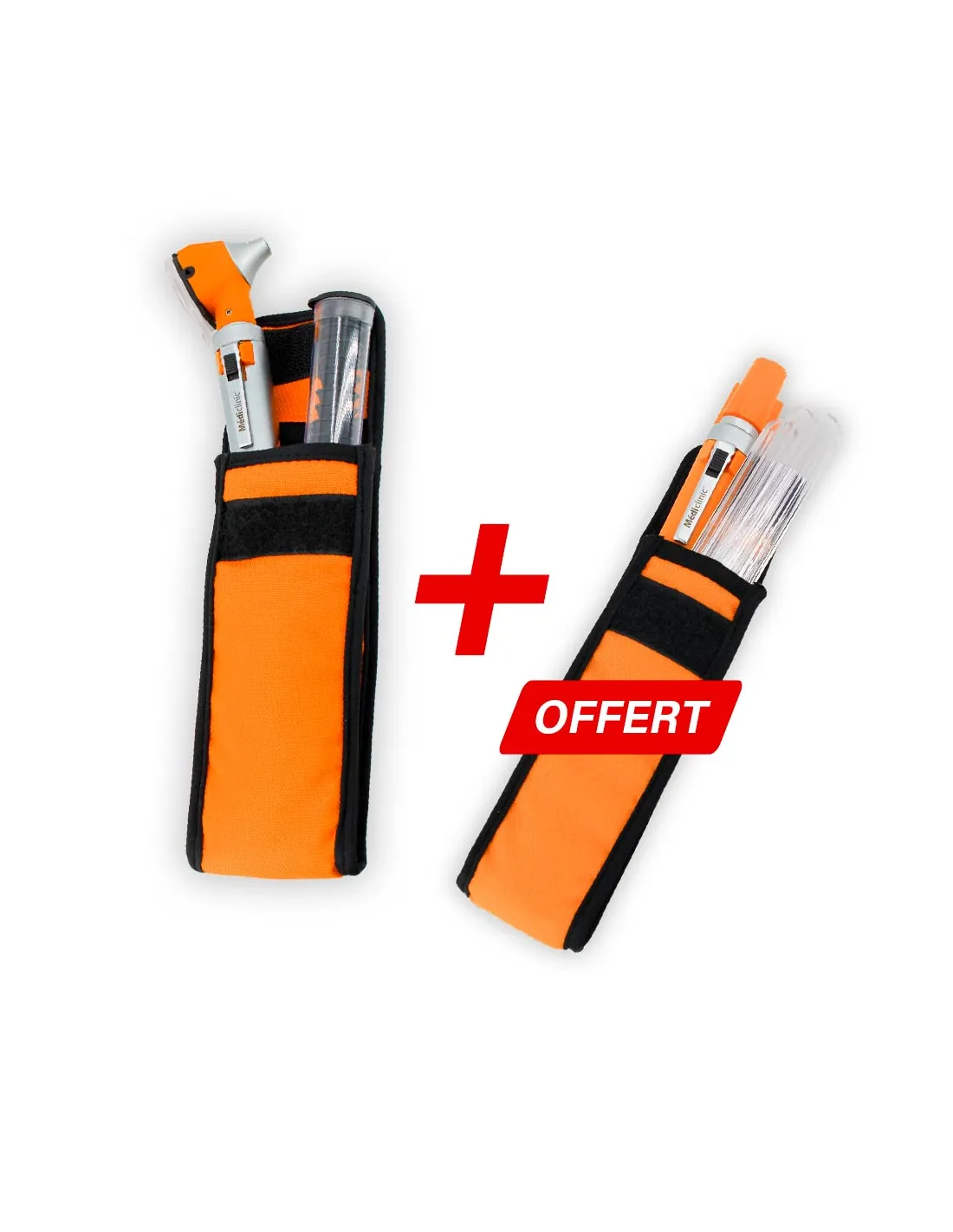 Ce pack complet et pratique associe un otoscope LED FO orange à une lampe stylo porte-abaisse-langue LED orange, offrant aux professionnels de santé un équipement fiable et harmonisé pour les examens ORL du quotidien.