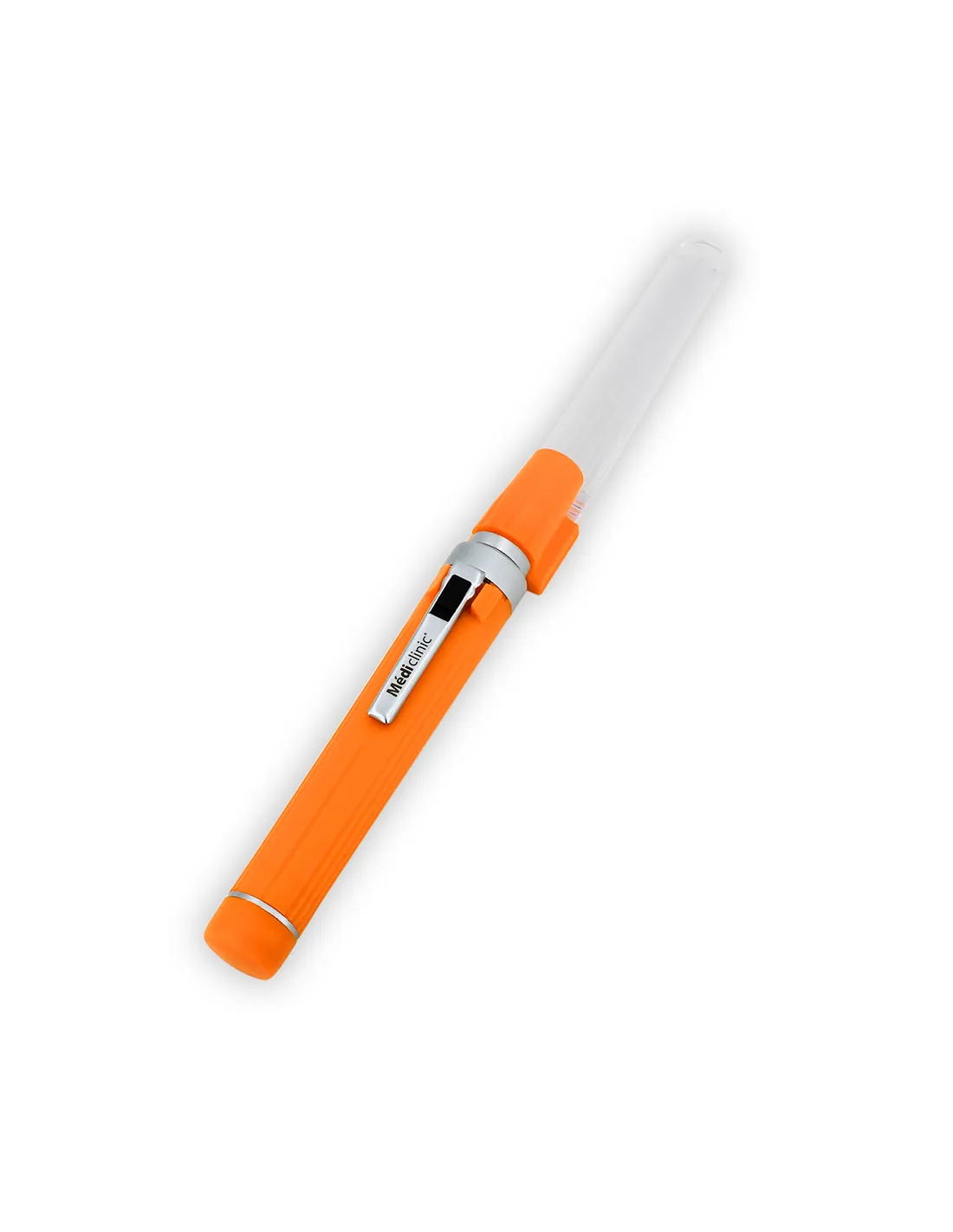 La lampe stylo porte-abaisse-langue LED orange complète idéalement ce pack. Conçue pour les examens de la gorge et de la cavité buccale, elle offre un éclairage LED blanc précis et homogène, assurant une visibilité optimale pour un diagnostic fiable. Son design discret s’intègre parfaitement aux équipements médicaux professionnels.