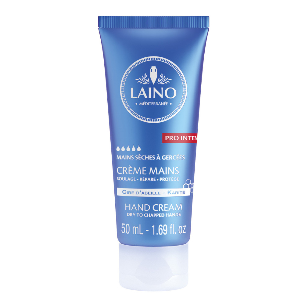 Crème hydratante Laino Pro Intense pour les mains abîmées et gercées en tube de 50 ml.