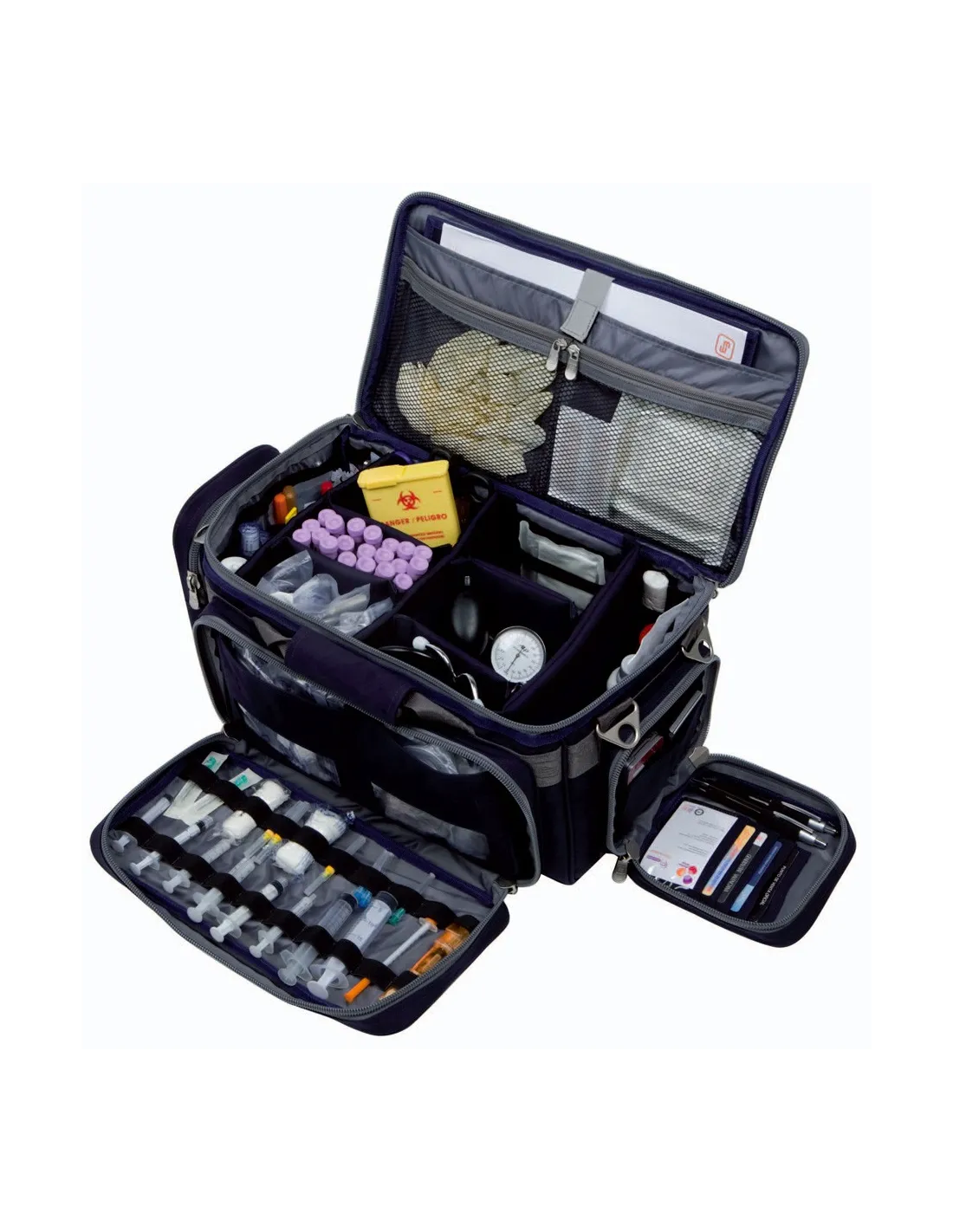 - 1 poche externe de grande capacité avec des bandes élastiques et des poches volumineuses.