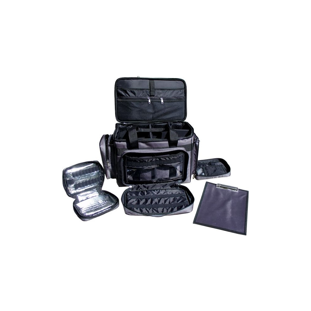 Le sac de transport est fourni avec un ampoulier isotherme et un porte-documents "bloc notes" amovibles, assortis avec le tissu.