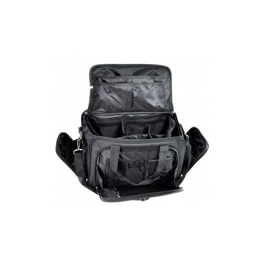 Elle possède une poche principale modulable grâce à des séparateurs en velcro, 3 poches externes 2 latérales et une frontale.