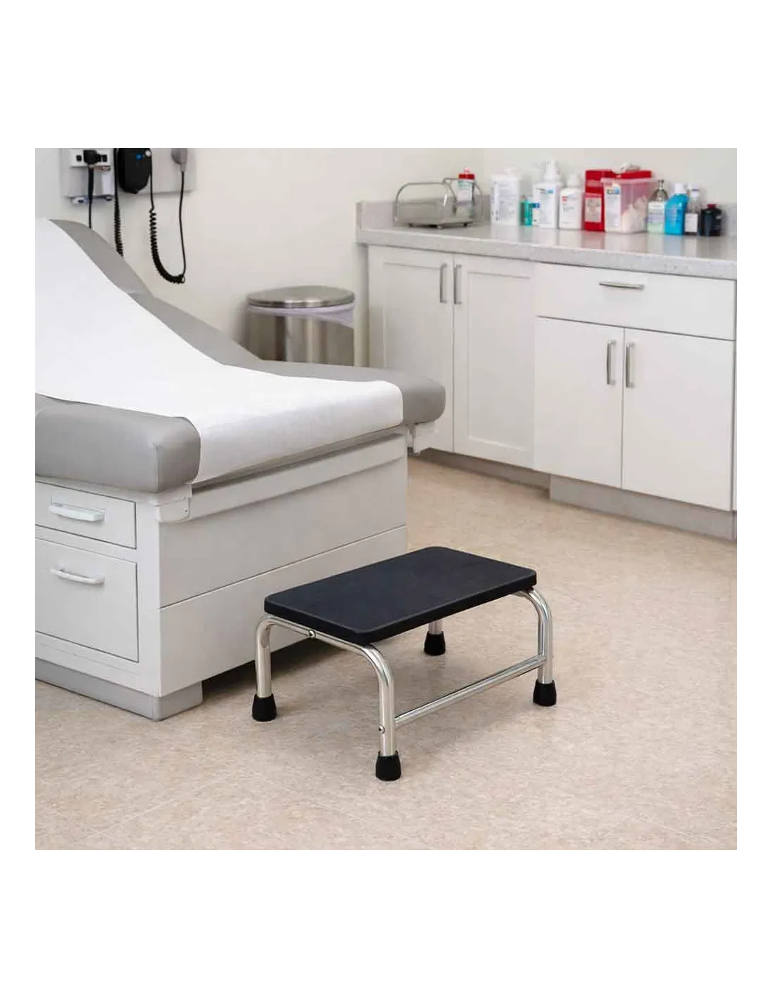 La sécurité du patient est la priorité de cet équipement grâce à sa plateforme en plastique noir dotée d'une texture antidérapante. Cette surface agrippante prévient efficacement les risques de glissade lors de la montée ou de la descente, même pour les personnes à mobilité réduite ou fragilisées.
