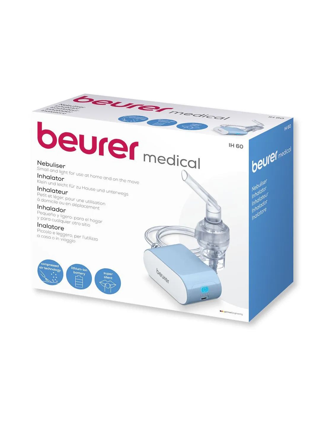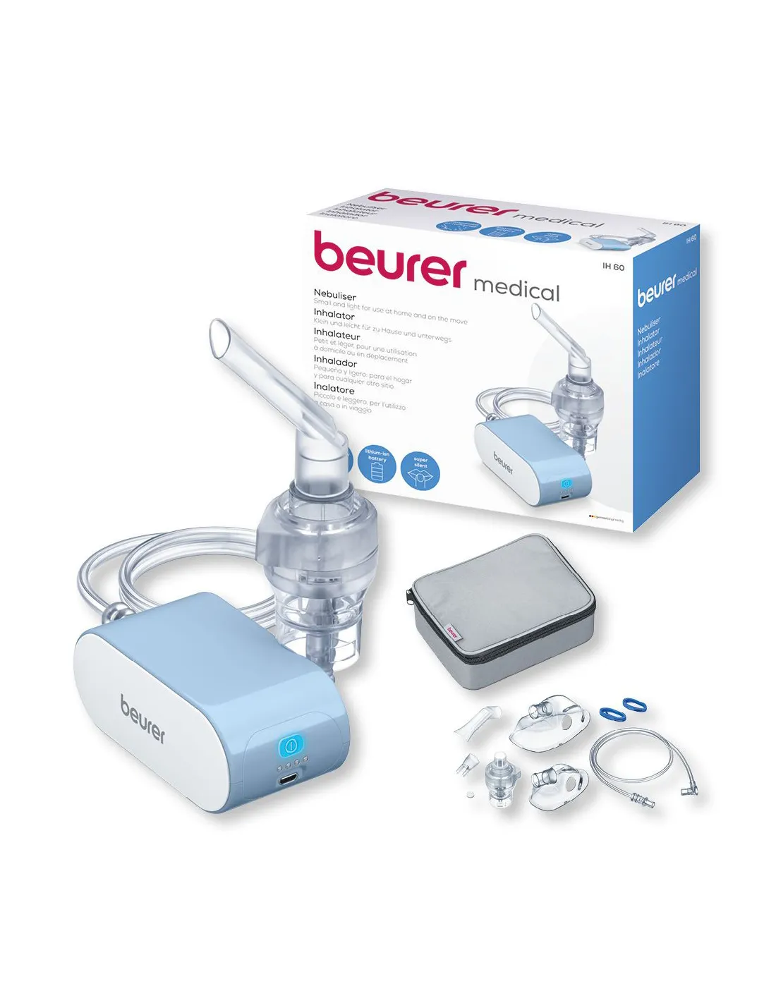 L'inhalateur portable Beurer IH 60 est ce qu'il vous faut pour suivre un traitement à la maison comme lors de vos déplacements. Son masque pour enfant et son masque pour adulte font de cet inhalateur électrique un appareil qui peut convenir pour tous les âges. Il est aussi doté d'un embout buccal, d'un embout nasale, et d'un adaptateur secteur. Enfin cet inhalateur portable et électronique est silencieux pour une utilisation agréable et surtout possède une batterie rechargeable.